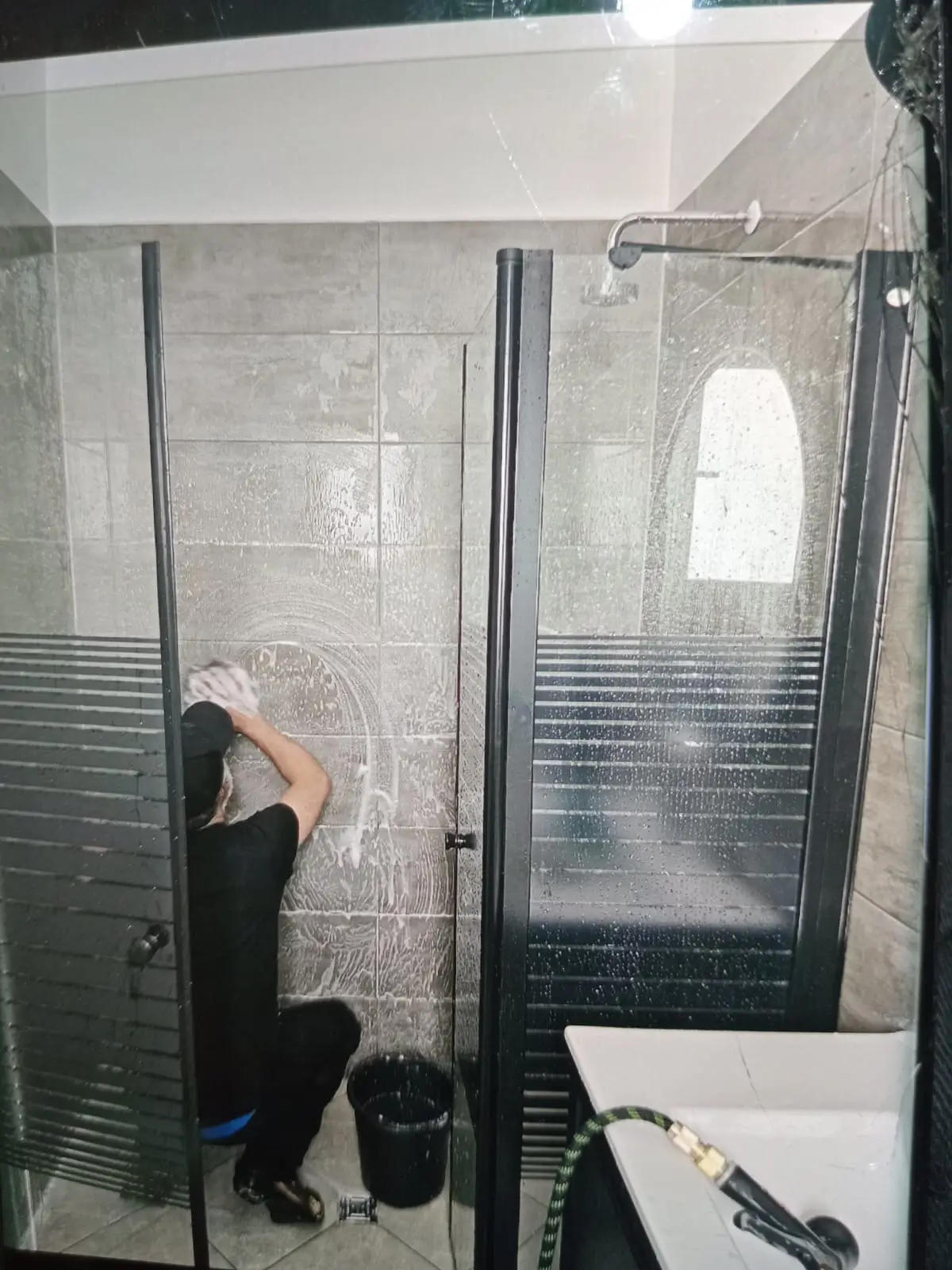 ניקוי קפדני של ריצוף, חיפוי קירות, כלים סניטריים, מסילות מקלחון ואזורי מגע. הכנה מלאה לשימוש נקי והיגייני.